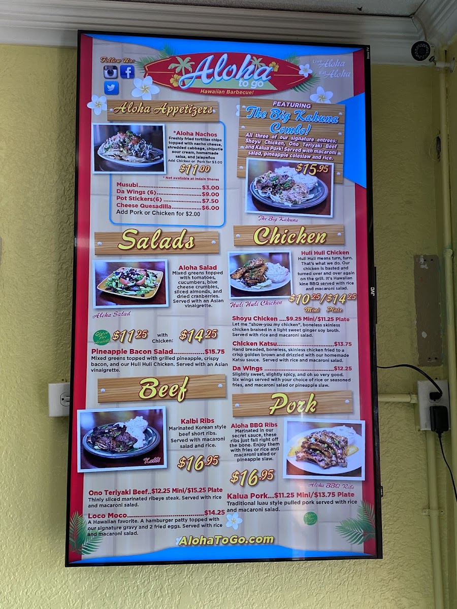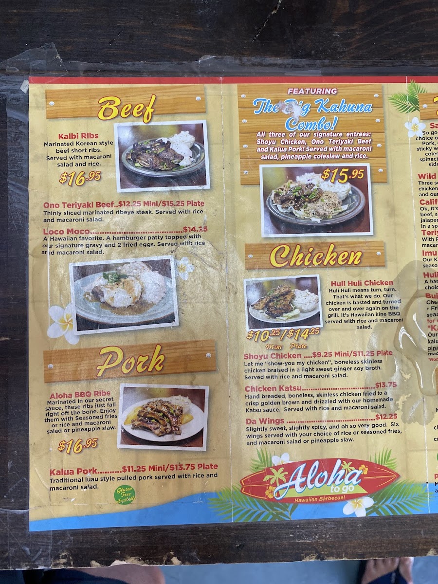 Aloha To Go is a culinary gem nestled in Indian Shores, Florida, offering a vibrant menu inspired by Hawaiian flavors. The highlight of the menu is the Huli Huli Chicken, expertly grilled to perfection and served with sticky white rice and macaroni salad, promising a taste of the islands. For those seeking handheld delights, the Build A Burger allows customization with toppings like blue cheese and fried eggs, complemented by seasoned steak fries. Taco lovers can indulge in Wild Wahine Tacos, filled with flavorful chicken or pork and drizzled with chipotle sour cream.